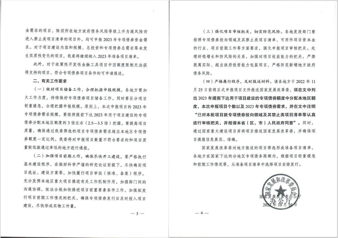 2020年、2021年的專項債申報通知都是財政部與發改委聯合發文,今年(2022年)是發改委發文,發改委對產業,對規劃,對項目的敏感度更高,論證也更充分,所以,2023年的專項債項目方案與可研的編制質量要求將會有所提升,在項目入庫的源頭審核方面或將更為嚴格。