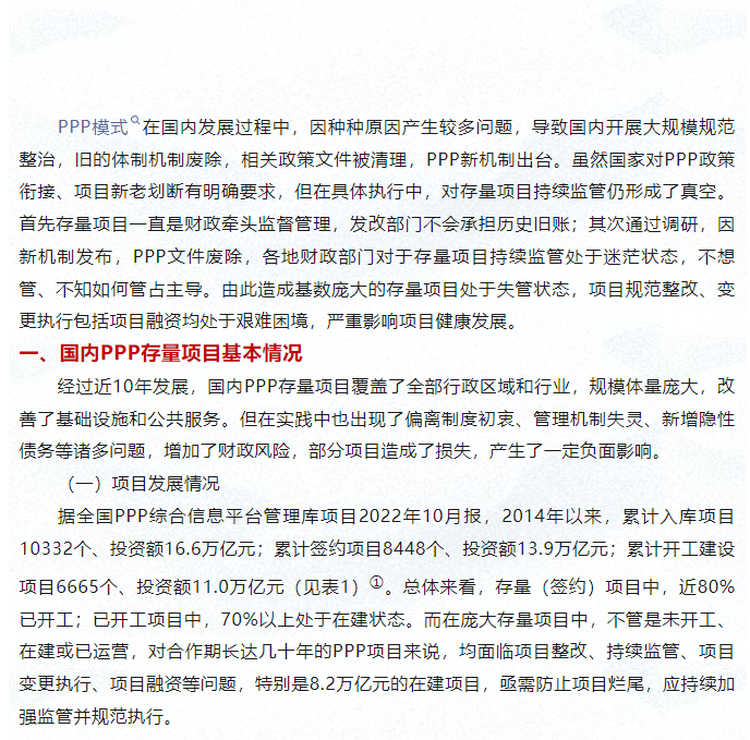 新機(jī)制下PPP存量項(xiàng)目持續(xù)監(jiān)管探討