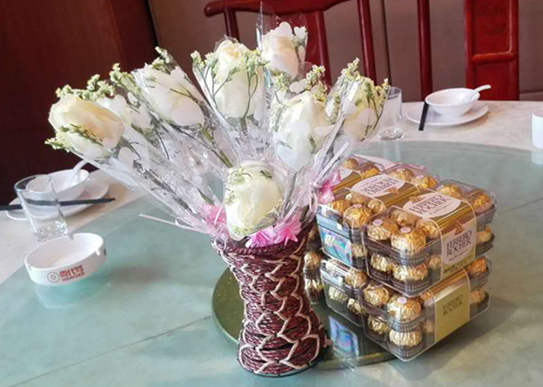 男神們?yōu)榕駛儷I(xiàn)上鮮花和禮物